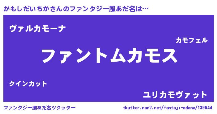 | 女子向けラノベタイトル風あだ名 | 『かもしだいちかは平凡を望む』 |