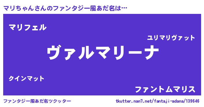 | ヘコむあだ名 | 『マリふぇ~』『マリぷりん』 |