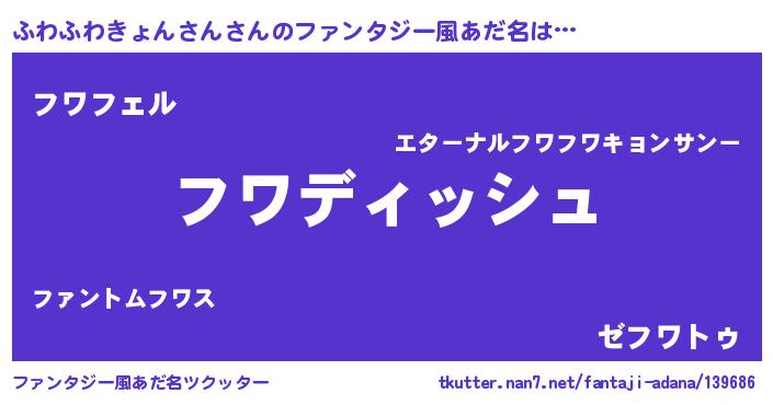 | ヘコむあだ名 | 『ふわふわきょんさん(震え声)』『ふわにー』 |