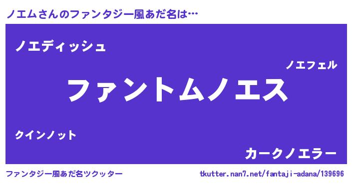 | 男性向けラノベタイトル風あだ名 | 『ノエムの嫁は女の子じゃないと思った?』 |