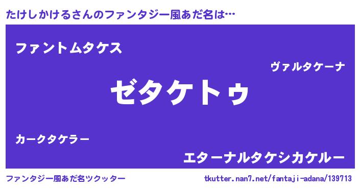 | 男性向けラノベタイトル風あだ名 | 『Re:たけしかけるから始める異世界生活』 |