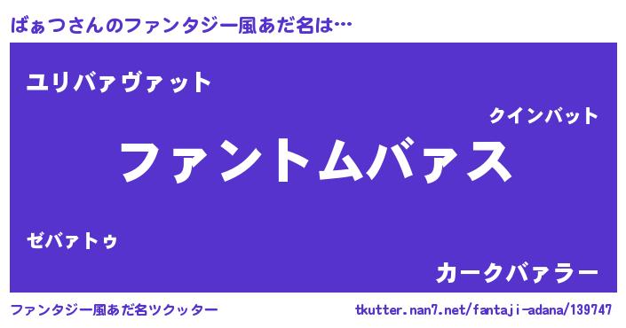 | 女子向けラノベタイトル風あだ名 | 『ばぁつ様がみてる』『死神ばぁつの再婚』 |