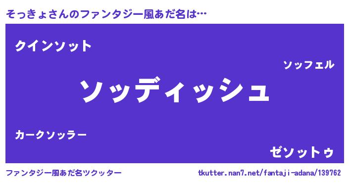 | ヘコむあだ名 | 『そっきょ(震え声)』『そっっふぃ~』 |