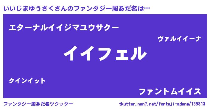| 男性向けラノベタイトル風あだ名 | 『いいじまゆうさくの憂鬱』 |