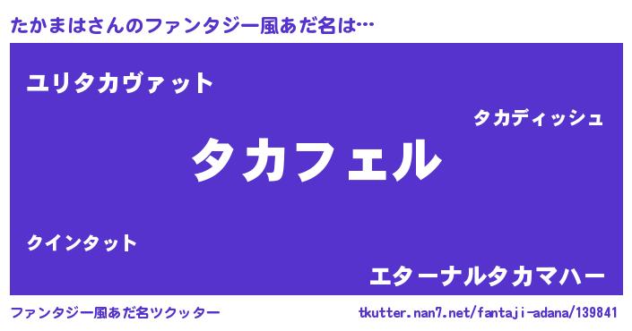 | 男性向けラノベタイトル風あだ名 | 『タカマハアートオンライン』 |