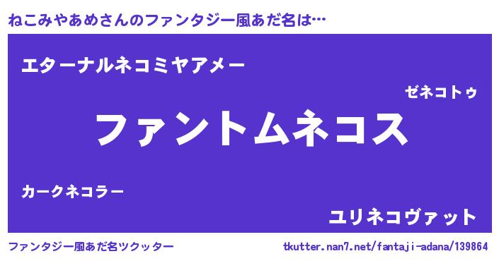ねこみやあめさんのファンタジー風あだ名をツクッター!