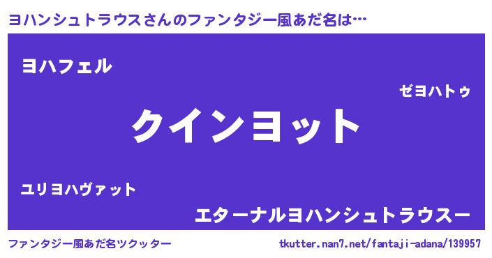 | ヘコむあだ名 | 『ヨハふぇ~』『酢こんぶ』『ヨハお』 |
