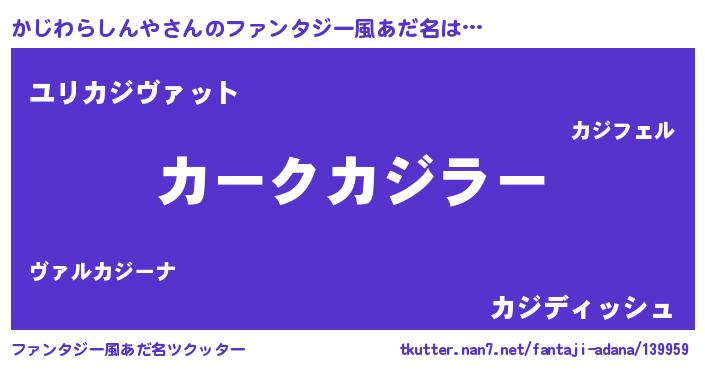 | 男性向けラノベタイトル風あだ名 | 『うちのかじわらしんやが世界を掌握している!』 |