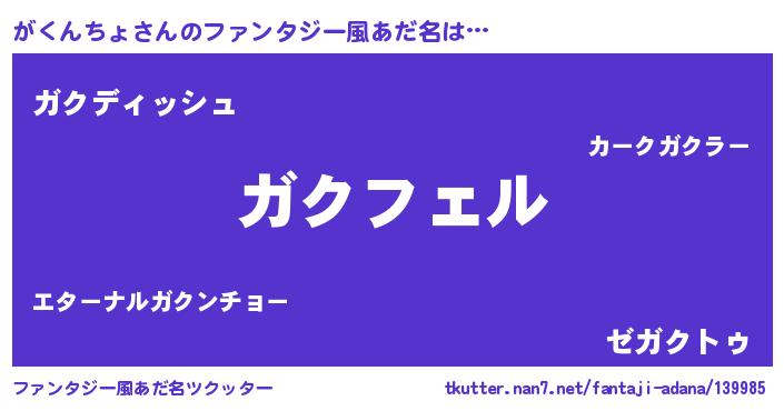 | ヘコむあだ名 | 『がくふぇ~』『がくんちょ(小並感)』 |
