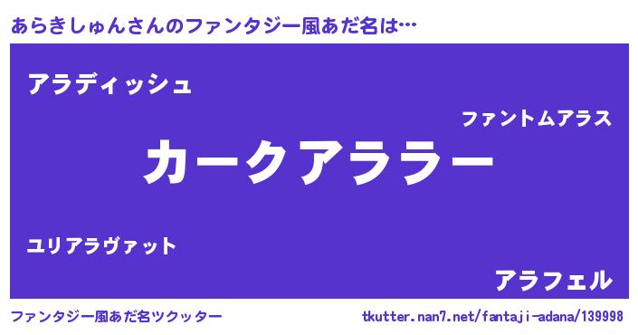 | ヘコむあだ名 | 『あらきしゅん(震え声)』『あらにー』 |