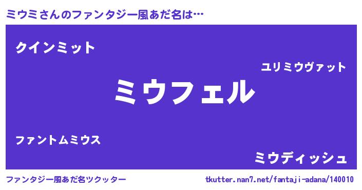 | ヒーロー風カッコイイあだ名 | 『スーパーミウミ』『愛の使者ミウミ』 |
