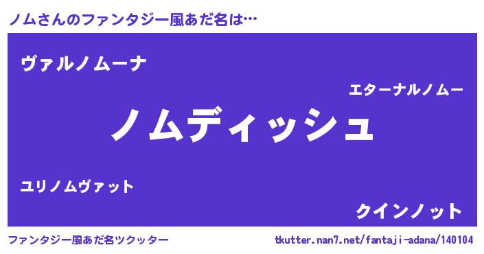 | 男性向けラノベタイトル風あだ名 | 『ノムという概念が存在しない退屈な世界 』 |