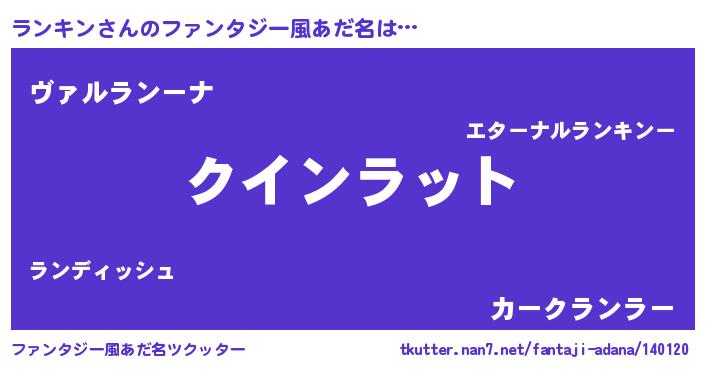 | 男性向けラノベタイトル風あだ名 | 『おまえをオタクにしてやるから、俺をランキンにしてくれ! 』 |