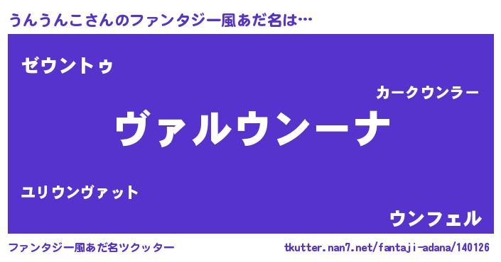 | 男性向けラノベタイトル風あだ名 | 『この素晴らしい世界にうんうんこを!』 |
