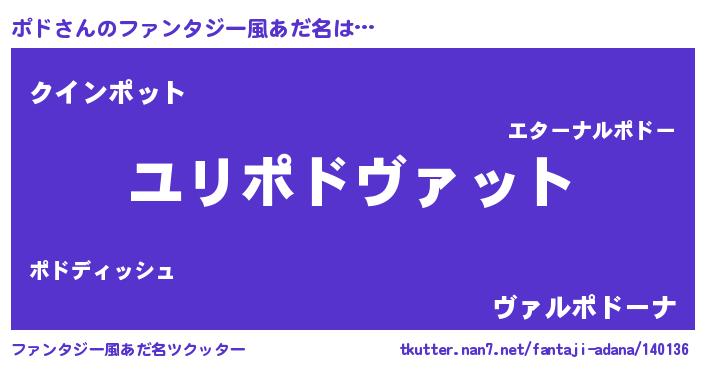 | 男性向けラノベタイトル風あだ名 | 『ポド~年齢イコール彼女いない歴の魔法使い~』 |