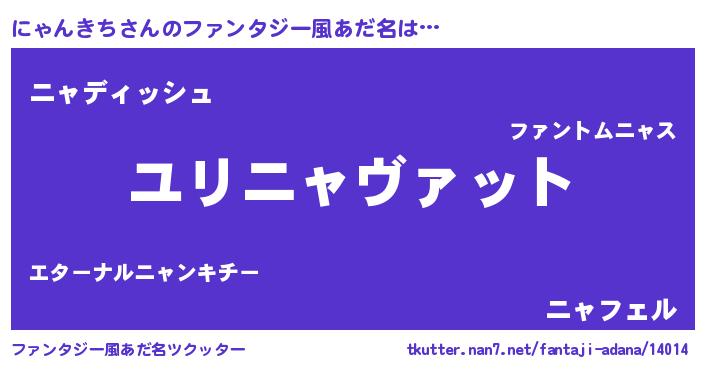 | 意味不明あだ名 | 『めかぶ科にゃんきち属』 |