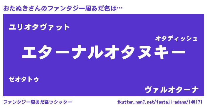 | 意味不明あだ名 | 『おたぬきフォーエバー』『自称おたぬき』 |
