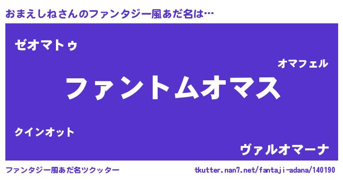 | 自動車の名前っぽいあだ名 | 『オルトマパン』『メルオマス・オンツ』 |