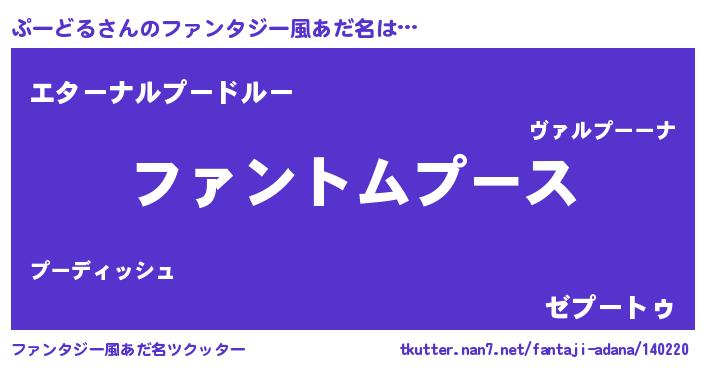 | 女子向けラノベタイトル風あだ名 | 『ぷーどるの卵を拾いまして』 |