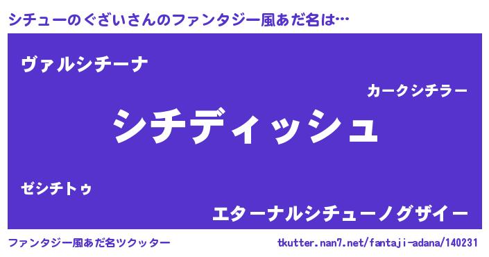 | ヒーロー風カッコイイあだ名 | 『ネオシチューノグザイ』『仮面シチダー』 |