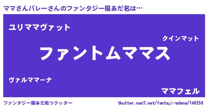 | ヒーロー風カッコイイあだ名 | 『幻影騎士ママ』『仮面ママダー』 |