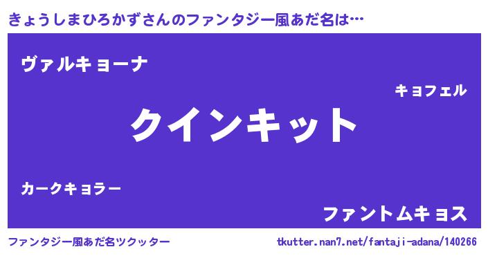 | ヘコむあだ名 | 『きょぷりん』『きょふぇ~』 |