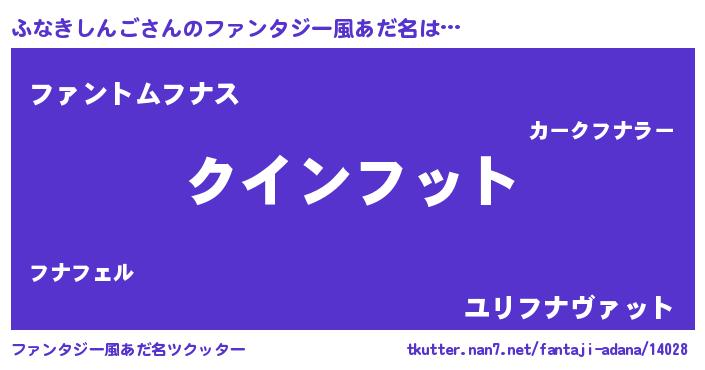 | 男性向けラノベタイトル風あだ名 | 『ノーゲーム・ノーフナキシンゴ』 |