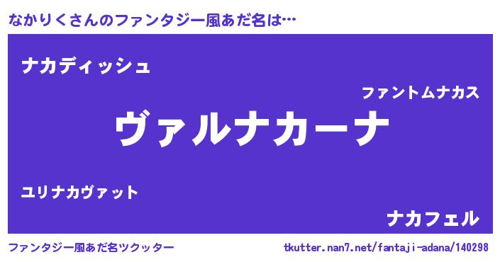 | 男性向けラノベタイトル風あだ名 | 『この素晴らしい世界になかりくを!』 |