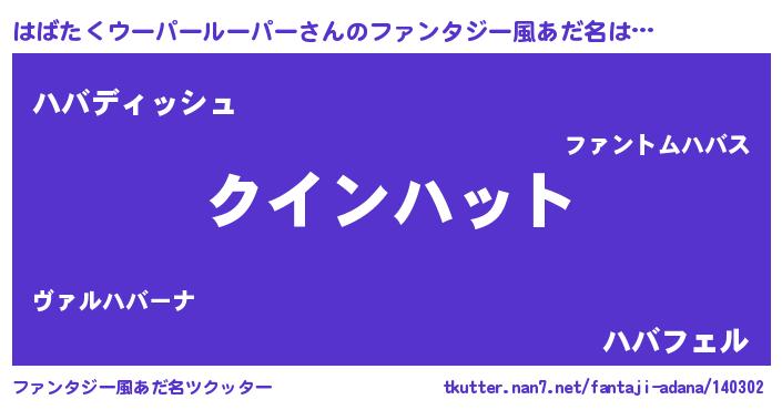 | 男性向けラノベタイトル風あだ名 | 『ノーゲーム・ノーハバタクウーパールーパー』 |