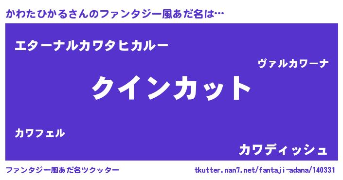 | 男性向けラノベタイトル風あだ名 | 『おまえをオタクにしてやるから、俺をかわたひかるにしてくれ! 』 |