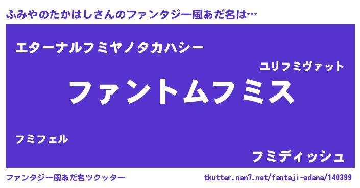 | ヒーロー風カッコイイあだ名 | 『幻影騎士フミ』『ネオフミヤノタカハシ』 |
