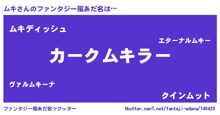 | 男性向けラノベタイトル風あだ名 | 『緋弾のムキ』『ノーゲーム・ノームキ』 |