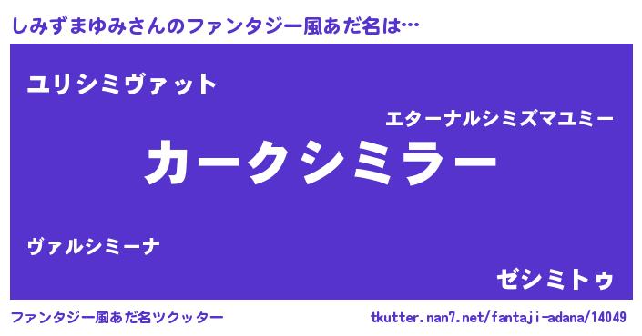 | 欧米人風あだ名 | 『しみずまゆみ・ステッグマイヤー』 |