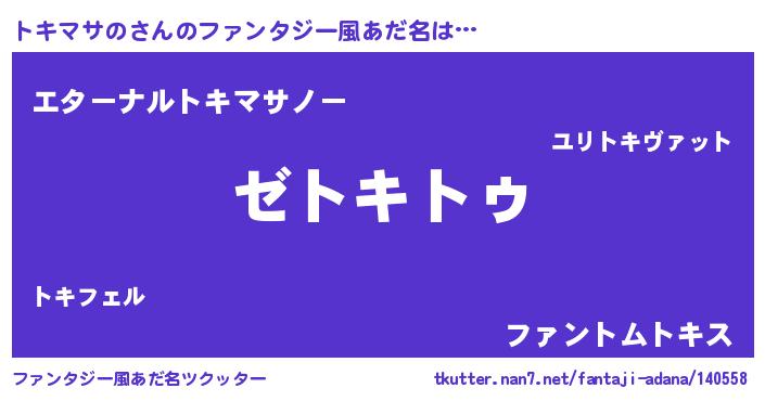 | ヒーロー風カッコイイあだ名 | 『超時空戦士トキマサノ』『黄金騎士トキ』 |