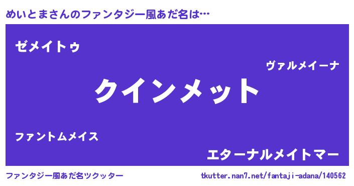 | ヒーロー風カッコイイあだ名 | 『愛の使者めいとま』『究極戦士メイトマ』 |