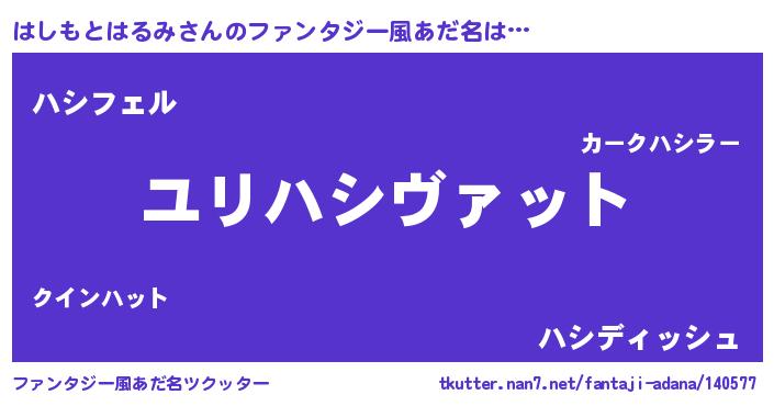 | 男性向けラノベタイトル風あだ名 | 『転生したらはしもとはるみだった件』 |