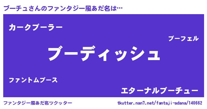 | 男性向けラノベタイトル風あだ名 | 『ブーチュという概念が存在しない退屈な世界 』 |