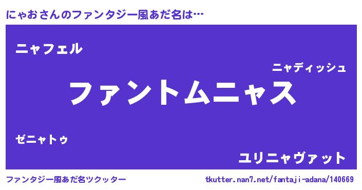 | 男性向けラノベタイトル風あだ名 | 『ダンジョンににゃおを求めるのは間違っているだろうか』 |