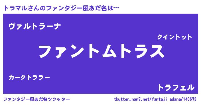 | 男性向けラノベタイトル風あだ名 | 『ダンジョンにトラマルを求めるのは間違っているだろうか』 |
