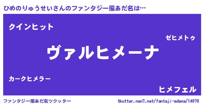 | 男性向けラノベタイトル風あだ名 | 『魔弾の王とひめのりゅうせい』 |