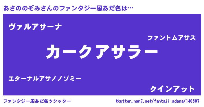 | ヒーロー風カッコイイあだ名 | 『仮面アサダー』『天弓騎士アサ』 |