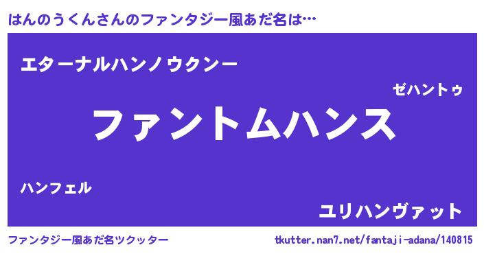 | ヒーロー風カッコイイあだ名 | 『炎刃騎士ハン』『最強戦士ハンノウクン』 |
