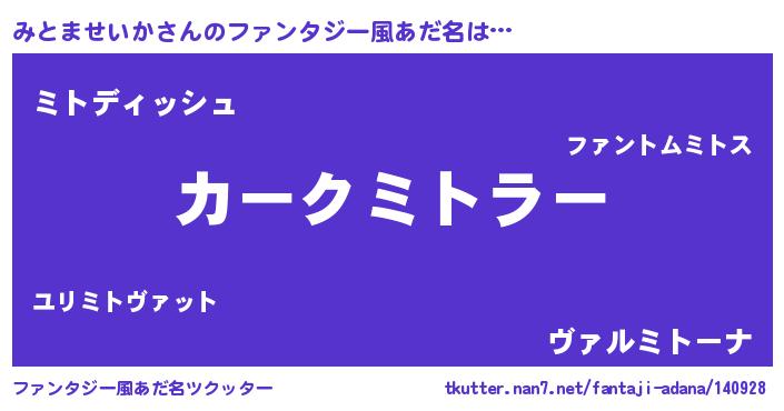 | ヒーロー風カッコイイあだ名 | 『ネオミトマセイカ』『仮面ミトダー』 |