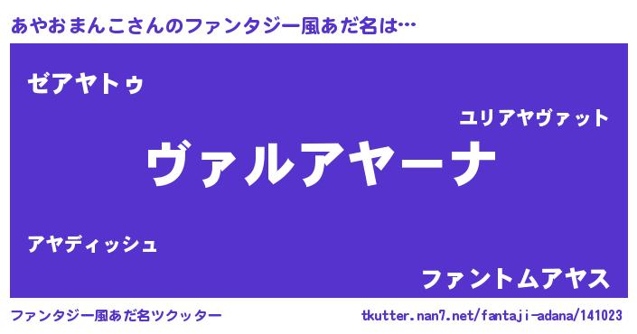 | 女子向けラノベタイトル風あだ名 | 『悪役あやおまんこに転生したようですが、知った事ではありません』 |
