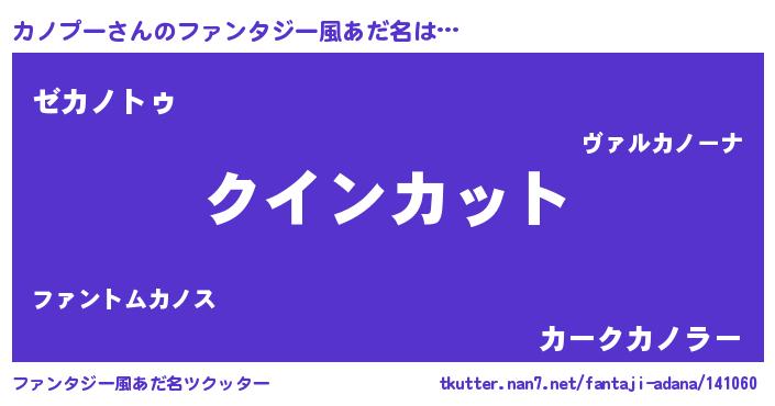 | 男性向けラノベタイトル風あだ名 | 『ノーゲーム・ノーカノプー』 |