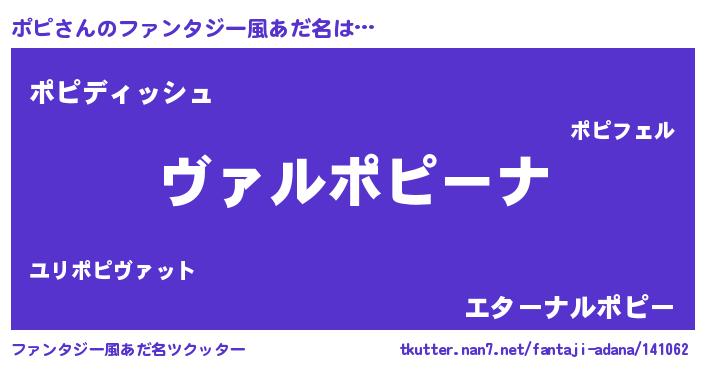 | 意味不明あだ名 | 『住所不定無職ポピ(11歳)』『永久保存ポピ』 |