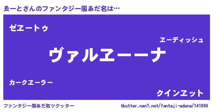 | 男性向けラノベタイトル風あだ名 | 『魔弾の王とゑーと』 |