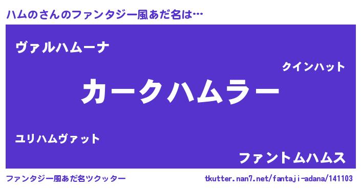 | 男性向けラノベタイトル風あだ名 | 『ハムのに滅ぼされるだけの簡単なお仕事です』 |