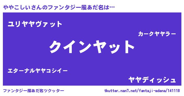| 男性向けラノベタイトル風あだ名 | 『おまえをオタクにしてやるから、俺をややこしいにしてくれ! 』 |