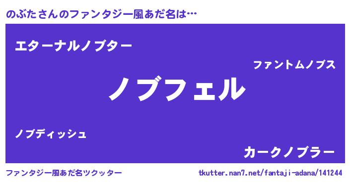 | 男性向けラノベタイトル風あだ名 | 『のぶたの憂鬱』『緋弾のノブタ』 |